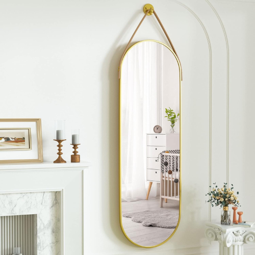 Espejo redondo alargado con marco minimalista y bordes suavizados, ideal para decorar baños o espacios de vestidor. Su diseño moderno aporta luminosidad y amplitud al ambiente, refleja detalles con claridad.