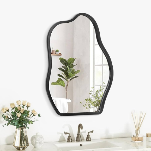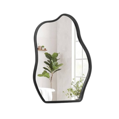 Espejo decorativo de forma orgánica con marco y acabado moderno. Ideal para decorar espacios interiores, añade un toque minimalista y elegante. Perfecto para salas, entradas o habitaciones.