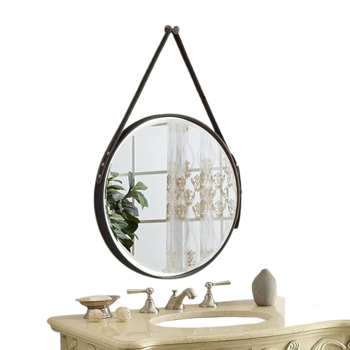 Espejo redondo de diseño elegante y versátil que transforma cualquier espacio con su acabado impecable. Equipado con correa resistente para colgar, se instala fácilmente en la pared sin complicaciones. Ideal para dormitorios, baños o áreas de estar, amplifica la luz natural y crea la ilusión de mayor amplitud. Su forma circular aporta sofisticación moderna a la decoración del hogar.