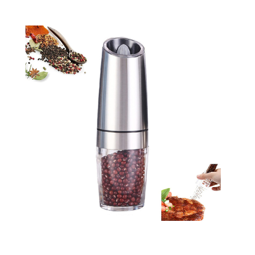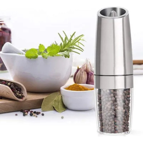 Molinillo eléctrico recargable con diseño modeno en acero inoxidable. Ideal para moler sal, pimienta y otras especias con solo presionar un botón. Cuenta con depósito transparente para visualizar el contenido y sistema de molienda eficiente y uniforme. Perfecto para cocina, parrilladas y mesa.