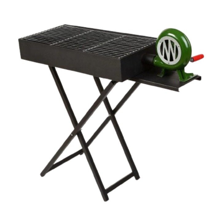 Parrilla BBQ con soplador de aire manual que transforma tus reuniones en momentos inolvidables. Cuenta con una amplia superficie metálica para cocinar múltiples alimentos simultáneamente, perfecta para asados en casa o al aire libre. Su base plegable tipo tijera se arma y guarda sin complicaciones, ideal para paseos y viajes. Incluye soplador manual que aviva las llamas con facilidad, eliminando la necesidad de esfuerzo extra. Diseñada para reuniones familiares, picnics y uso cotidiano en el hogar.