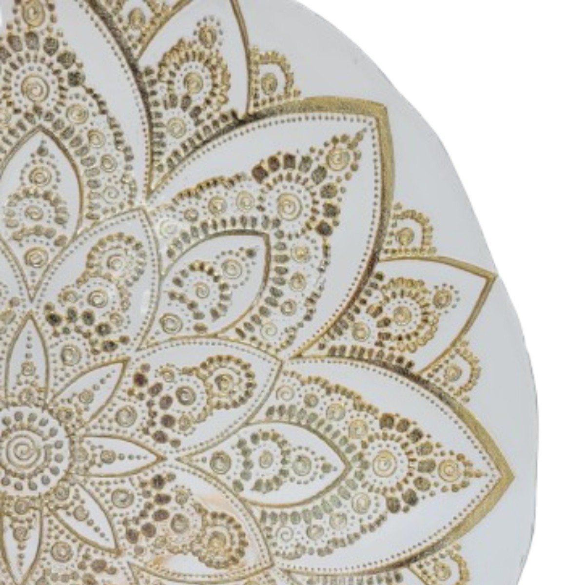 Este plato base con mándala dorada aporta estilo, brillo y un toque único a cada evento.